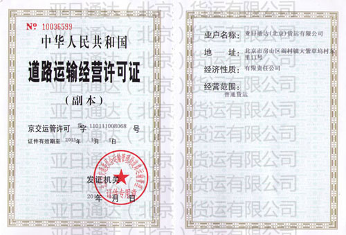 亞日通達(北京)貨運有限公司,成立于2006年,是以公路運輸、倉儲、包裝為主,鐵路運輸為輔的專業(yè)物流中心,公司實力雄厚,地處北京市海淀區(qū)上地軟件園。交通便利,代理公路、鐵路、包裝運輸業(yè)務(wù)。在公司全體員工的共同努力下,我們經(jīng)過多年的磨練,積累了豐富的管理模式和運輸經(jīng)驗,逐漸轉(zhuǎn)變了服務(wù)理念,提高了服務(wù)水準,創(chuàng)造出了巨大的行業(yè)價值,贏得了新老顧客的一致好評。經(jīng)過公司全體員工的不懈努力,現(xiàn)擁有多種車輛運輸,現(xiàn)成為一家專業(yè)運輸單位之一。價格優(yōu)惠、安全迅速、發(fā)貨及時,包價運輸丟失賠償。公司擁有庫房(面積一千平米)擁有自己的大型車輛20多部運輸力量雄厚,網(wǎng)絡(luò)遍布全國,員工100多人。每天受理北京發(fā)往外地的貨物和快件,等全國大中城市的整車、零擔(dān)貨物的運輸業(yè)務(wù)?,F(xiàn)與我公司合作的單位有中國石化,神州數(shù)碼, 北京華夏電通科技股份有限公司,清華同方,愛立信等等。我們是IT專業(yè)物流服務(wù)提供商,平均每年運送貨物總價值超過80億元人民幣,并在眾多專業(yè)物流服務(wù)領(lǐng)域中處于業(yè)內(nèi)領(lǐng)先水平,公司代辦保險。便捷的交通、功能全面的設(shè)施、優(yōu)質(zhì)的服務(wù),是您從事貨物運輸,機房搬遷,配送服務(wù)的首選公司。公司的服務(wù)宗旨;為客戶創(chuàng)造價值、準時、誠信、便捷的運輸標準,樹立了“亞日通達”優(yōu)質(zhì)的社會形象,隨著網(wǎng)絡(luò)時代越來越走近我們的生活,同時公司取得了迅猛的發(fā)展,亞日通達2010年度公司被賽迪傳媒評為最佳物流商的榮譽。受到廣大客戶的好評。歡迎來電,我們將一如即往的期待與您合作,為客戶創(chuàng)造價值是我們服務(wù)的理念追求的目標。
